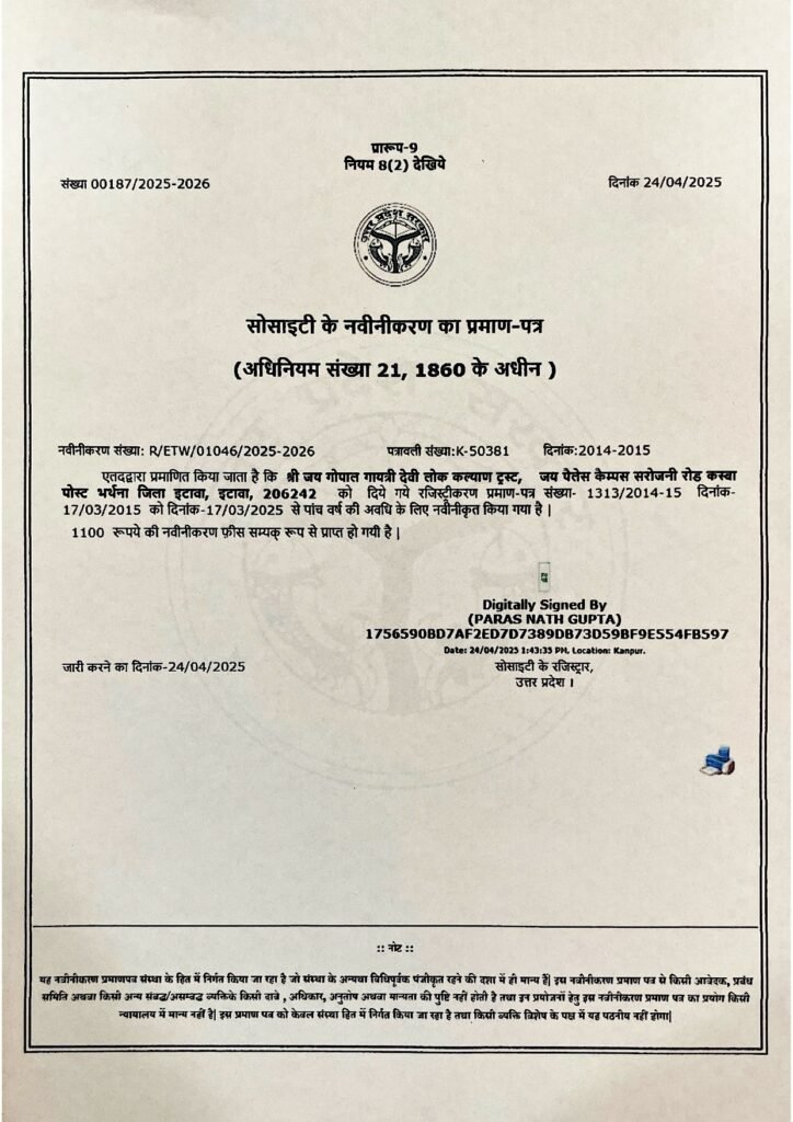 Society Renewal Certificate